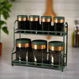 Majlis de lujo - 6 tarros de especias con estante de 2 niveles - Verde y dorado