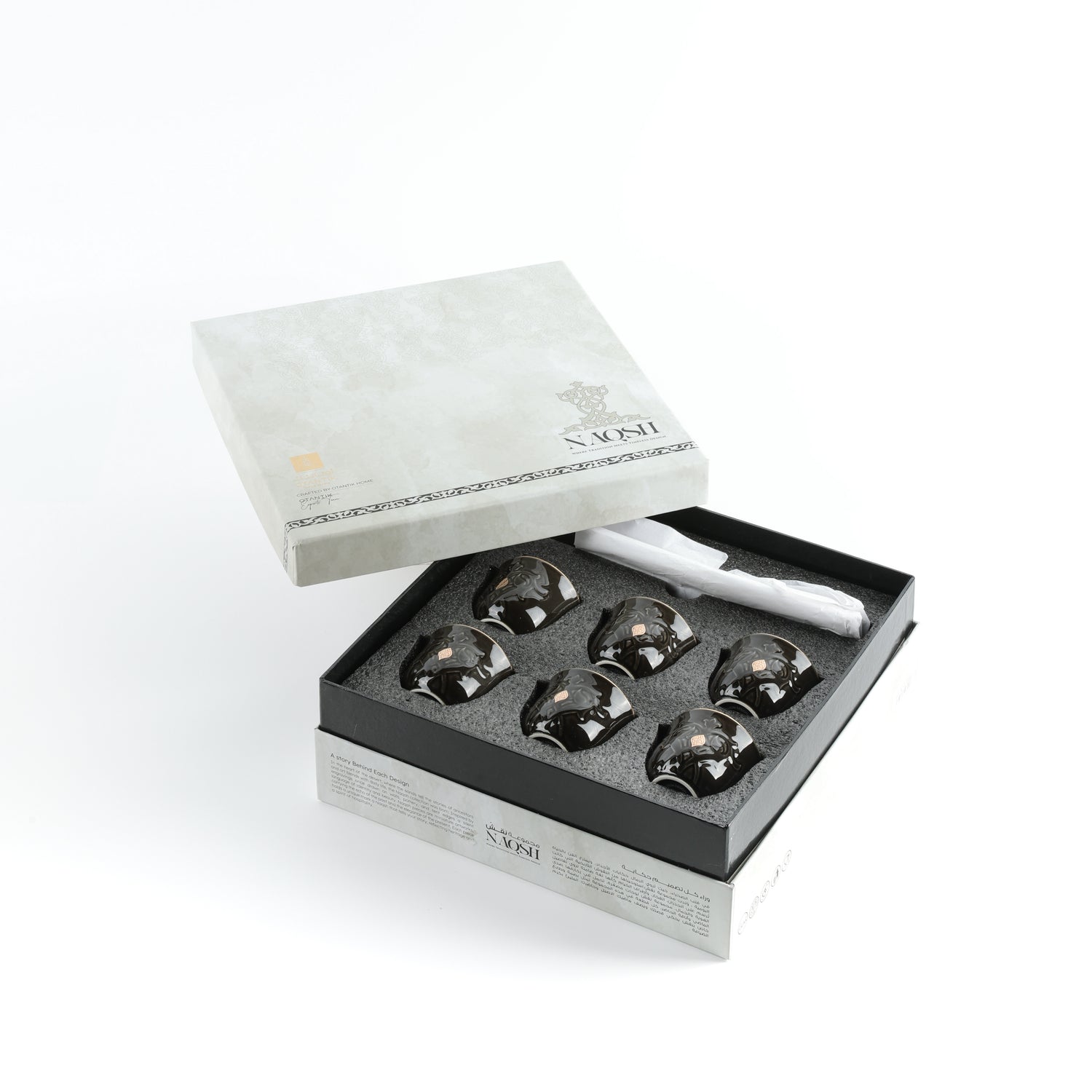 Naqsh - Arabic Coffee Cups With Holder - Black & Gold