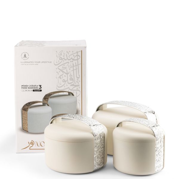 Noor - Termo para comida/servidor caliente (juego de 3) - Blanco y plateado