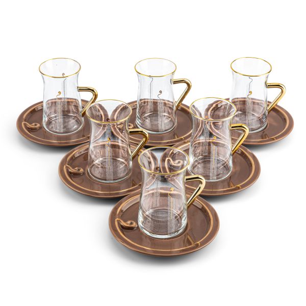 Luxury Noor - Juego de té (12 piezas) - Marrón y dorado