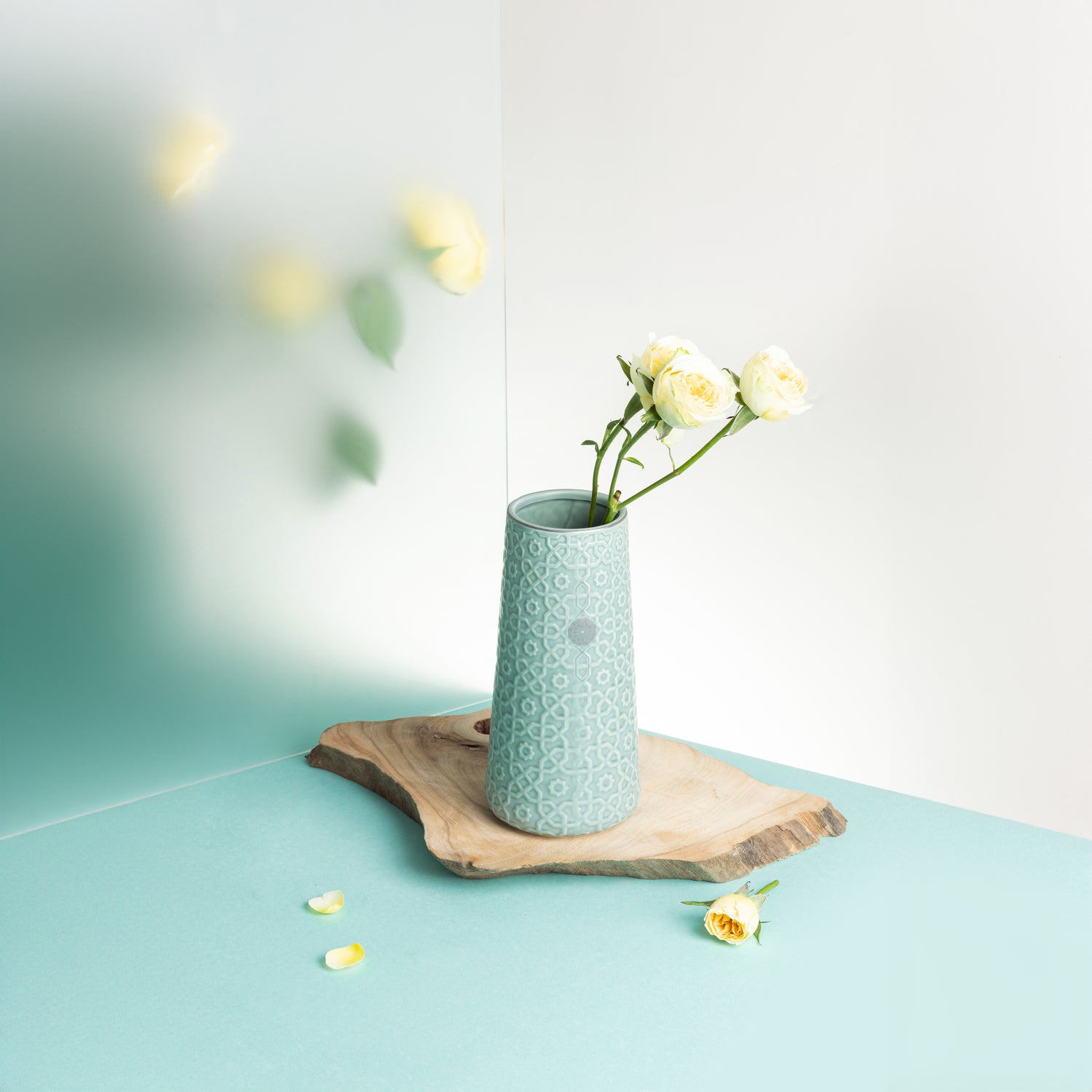 Rosette - Medium Decorative Vase - Baby Blue & Silver