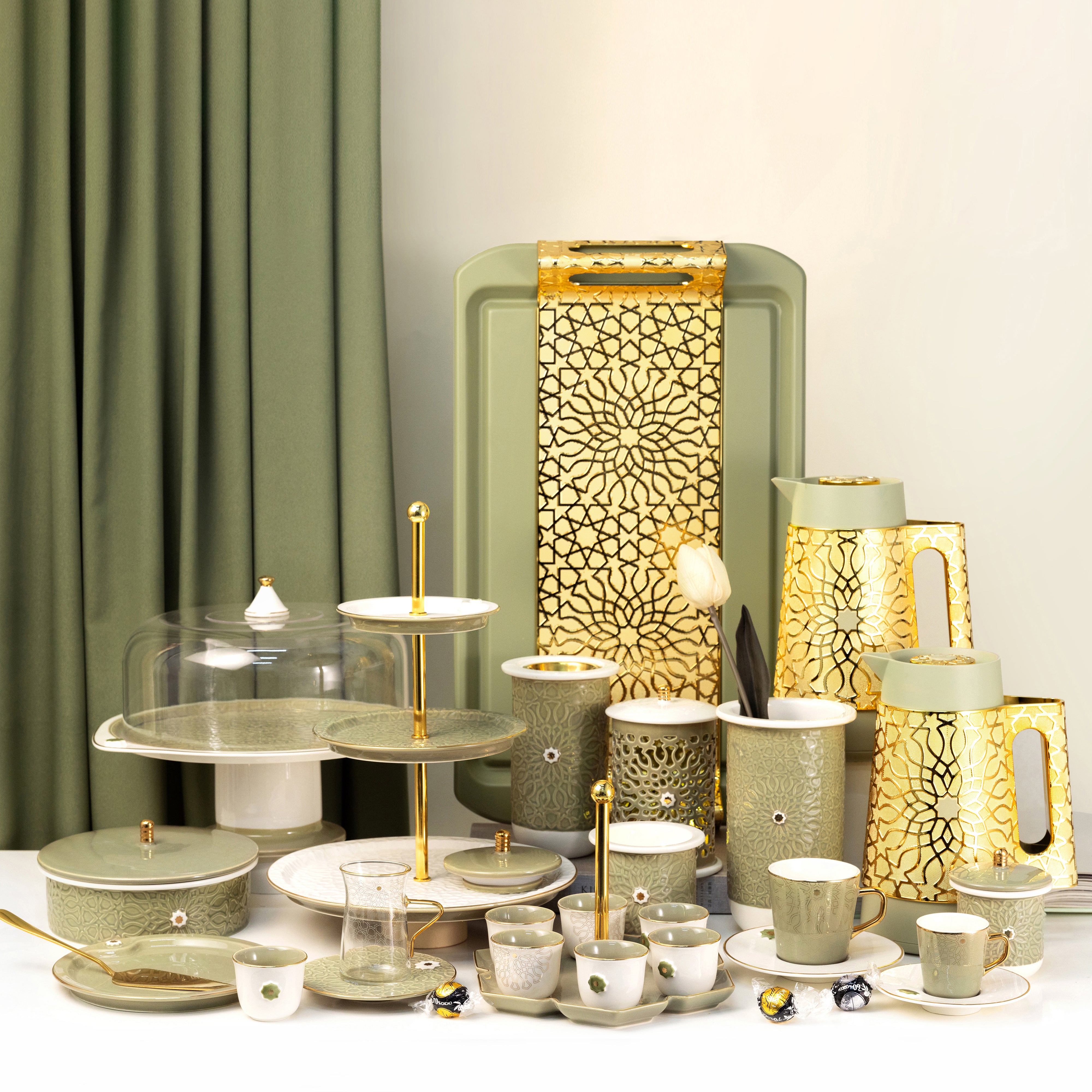 Liqa'a - Cake Set (9-Pc) - Olive Green & Gold