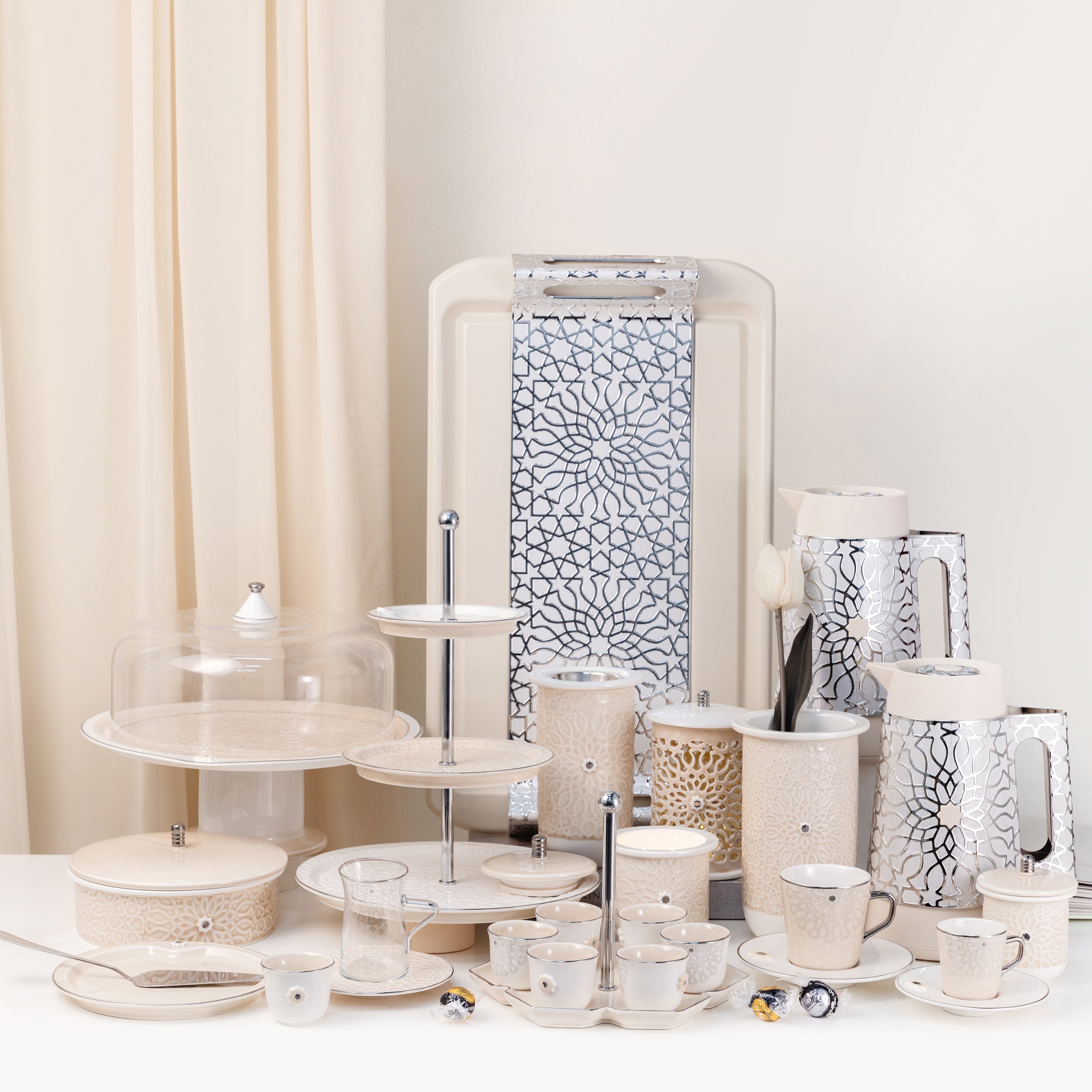 Diwan - Large Lantern Candle Holder - Pearl & Silver