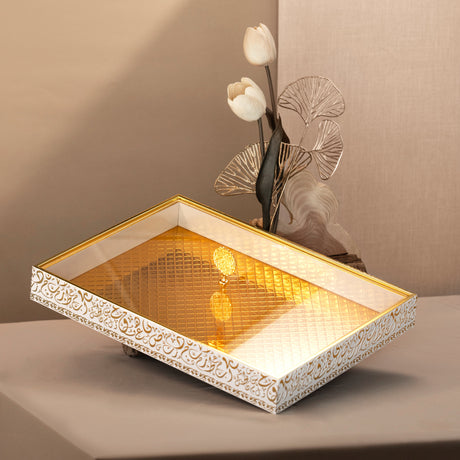 Royal BlossomHive 15" Square Bamboo Tray – White & Gold