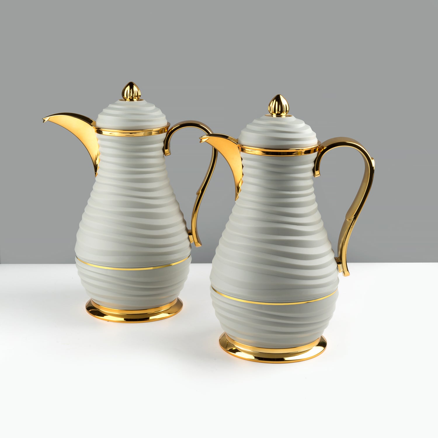 Harmony Flask Sets offer 1L volume and 12+ hour heat preservation. Real gold plating adds elegance to the set, making it an impressive and practical gift for any occasion. Each set comes in a gift box, adding to its appeal. Hand wash only.