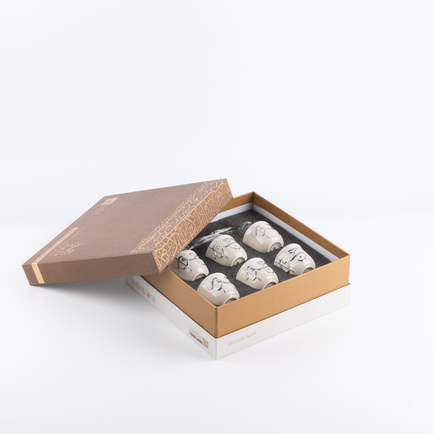 Jiwar - Arabic Coffee Cups With Holder - Beige & Silver