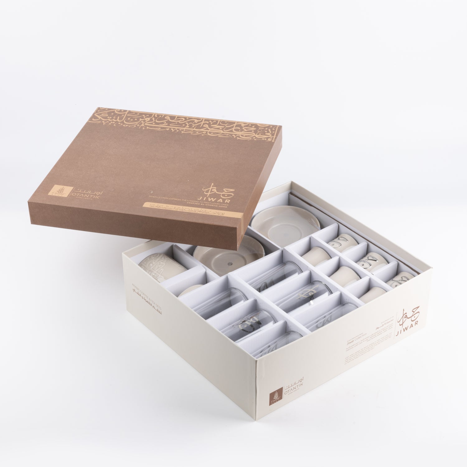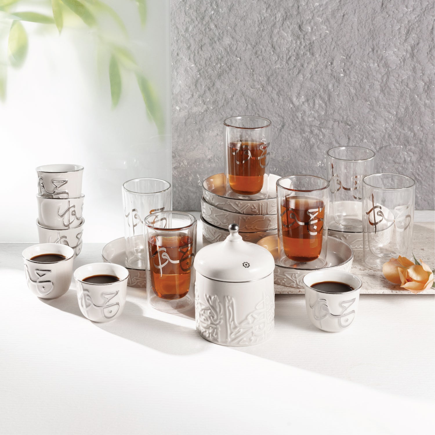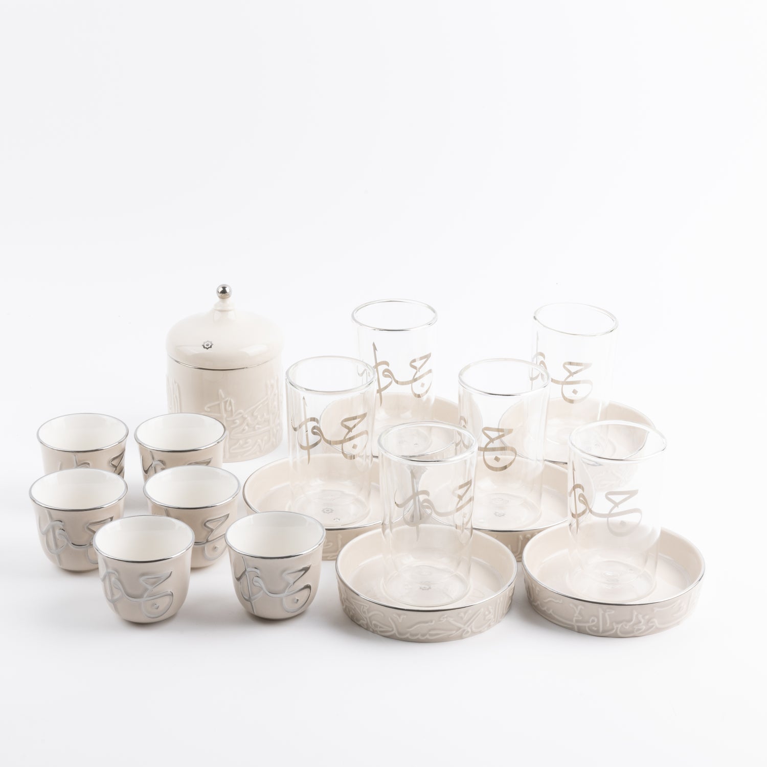 Jiwar - Tea Set (19-Pc) - Beige & Silver