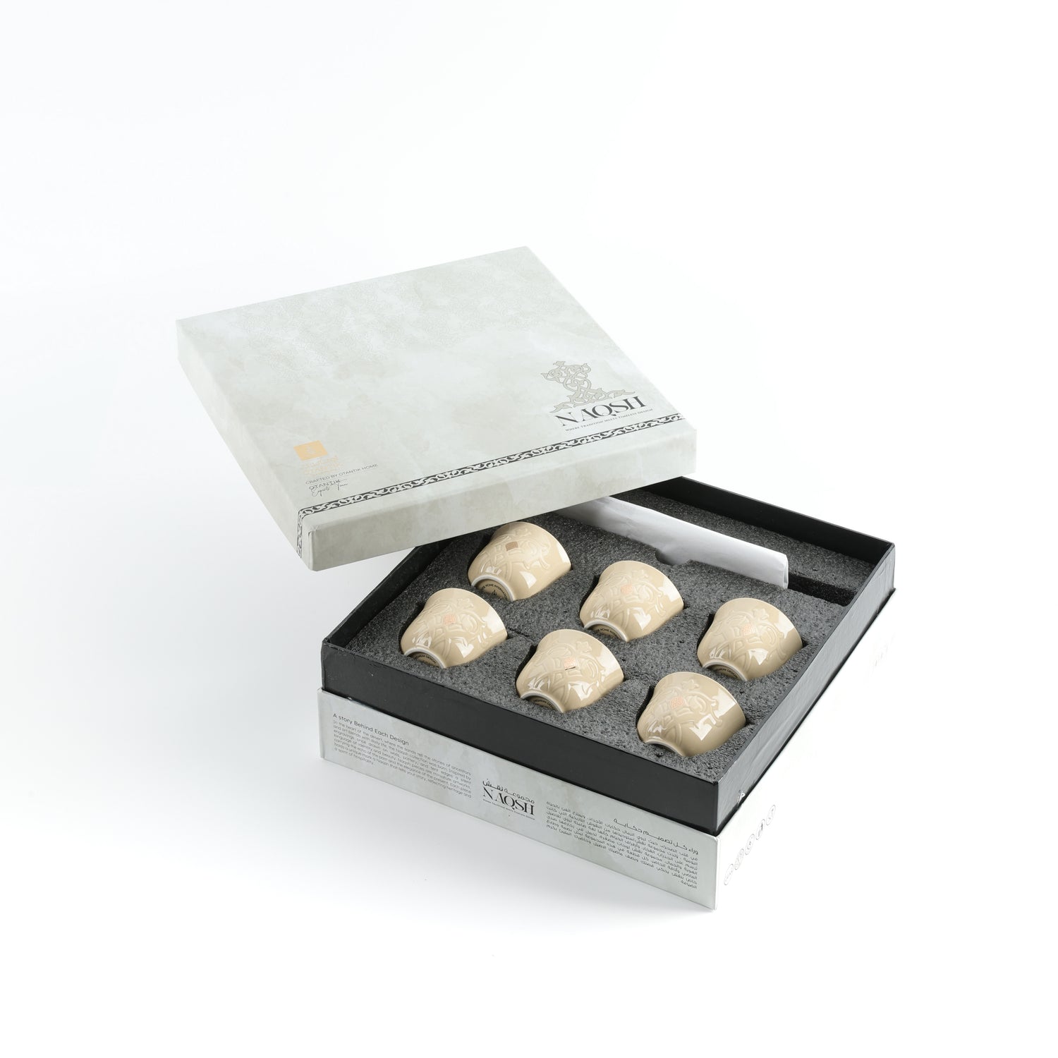 Where tradition meets refinement — the Naqsh Arabic Coffee Cups with Holder are designed for those who appreciate the elegance of every detail. This set beautifully unites timeless Arabic coffee culture with modern craftsmanship, creating an experience that feels both familiar and elevated.