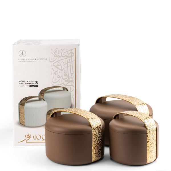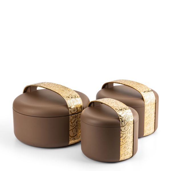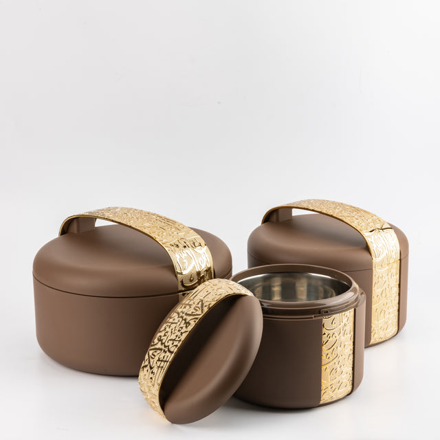 Noor - Food Thermos/ Warm Serv (Set of 3) - Brown & Gold