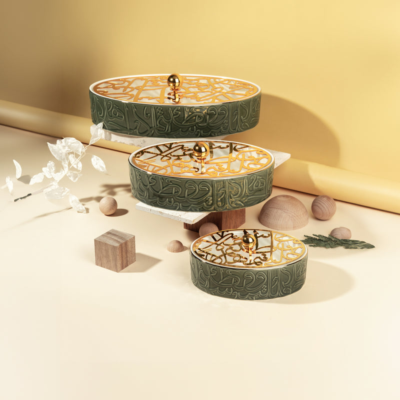 Liqa'a - Food Thermos/ Warm Serv (Set of 3) - Olive Green & Gold